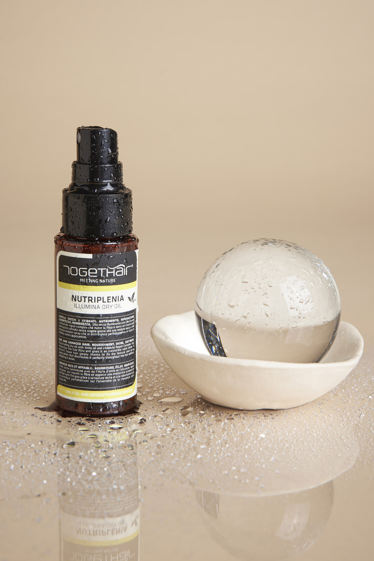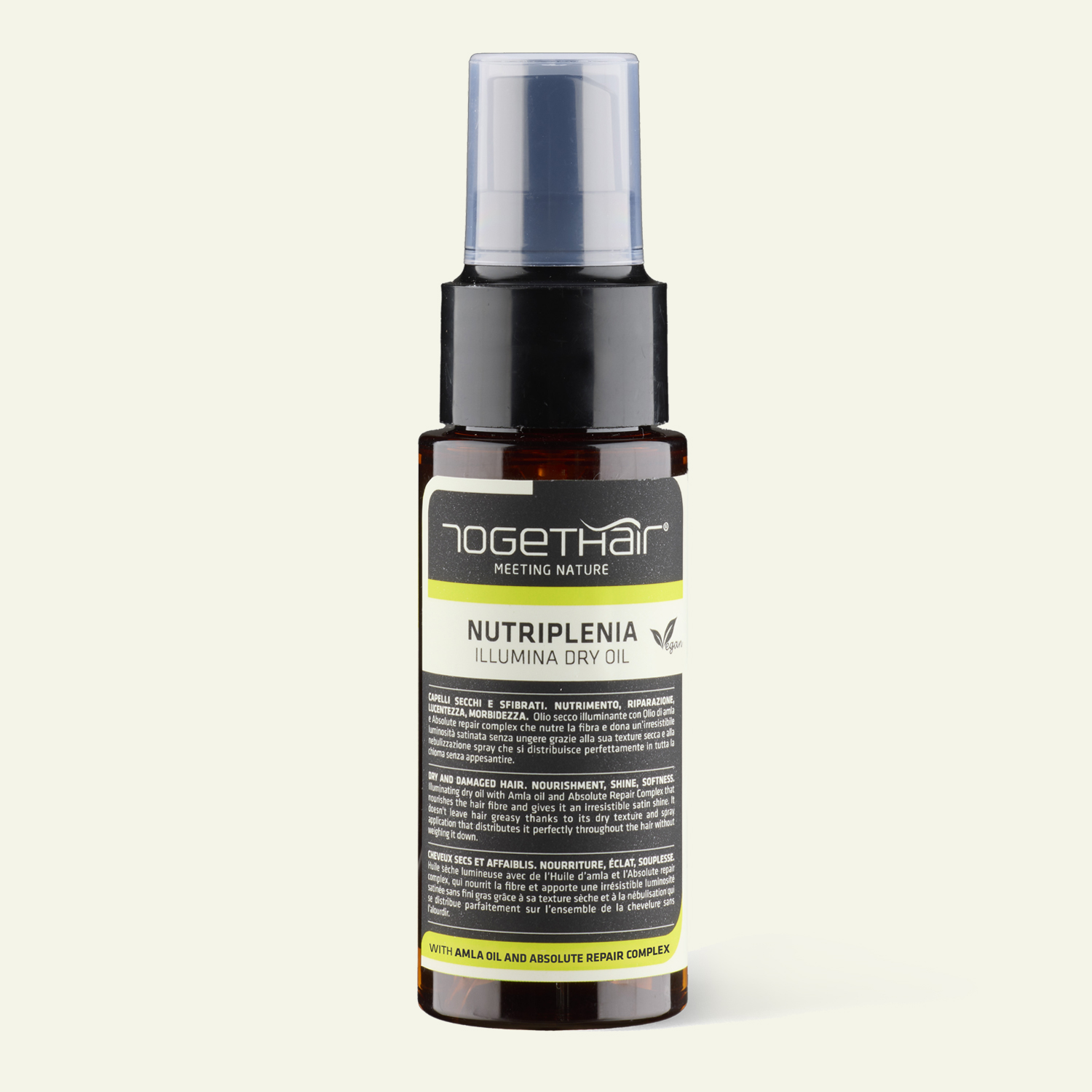Dry oil that nourishes the hair fibre and gives it an irresistible satin shine. It doesn't leave hair greasy thanks to its dry texture and spray application that distributes it perfectly throughout the hair without weighing it down.