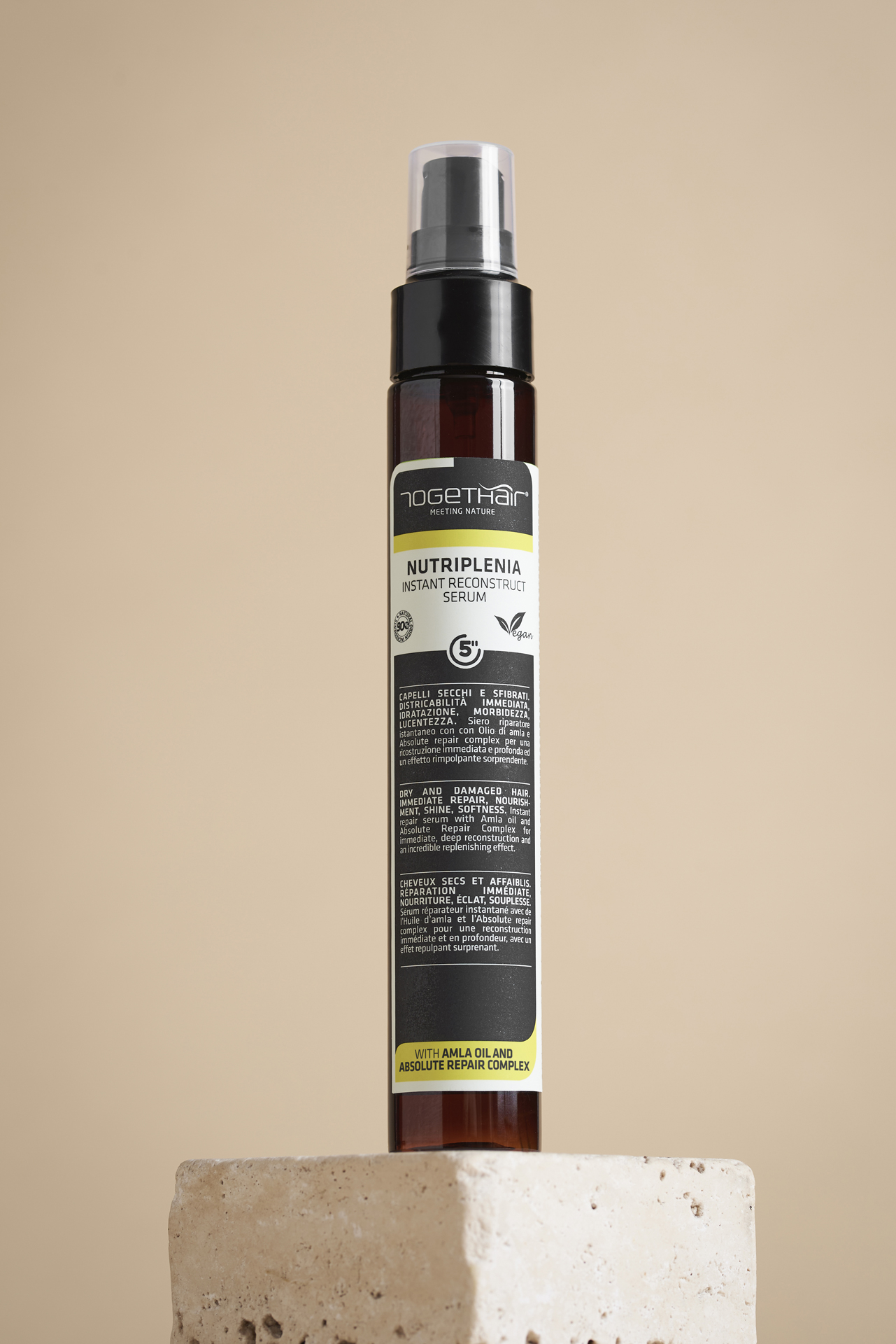 A repairing spray that gives instant body, thickness and softness in 5 seconds, rebuilding the hair fibre from the very first treatment.
