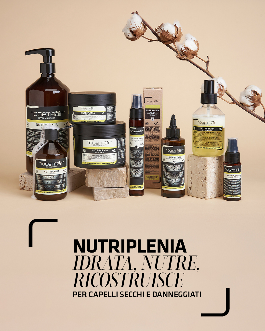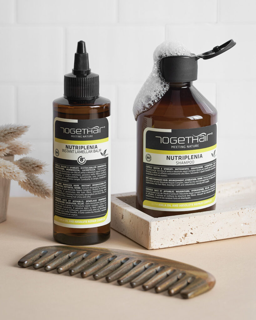 Nutriplenia è un sistema di trattamento professionale studiato per rigenerare i capelli secchi, fragili e danneggiati. La sua formula innovativa agisce in profondità sulla fibra capillare, aiutando a riparare i diversi livelli di danneggiamento e donando subito un aspetto più pieno, sano e luminoso.